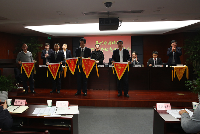 会上,城东、妙西、织里3家支行负责人作经验典型介绍,城西、城中、南街3家支行负责人作表态发言。会议对1月份劳动竞赛单项、综合考核指标排名第一和末位的支行进行了红黄旗授旗,激励先进,鞭策后进。