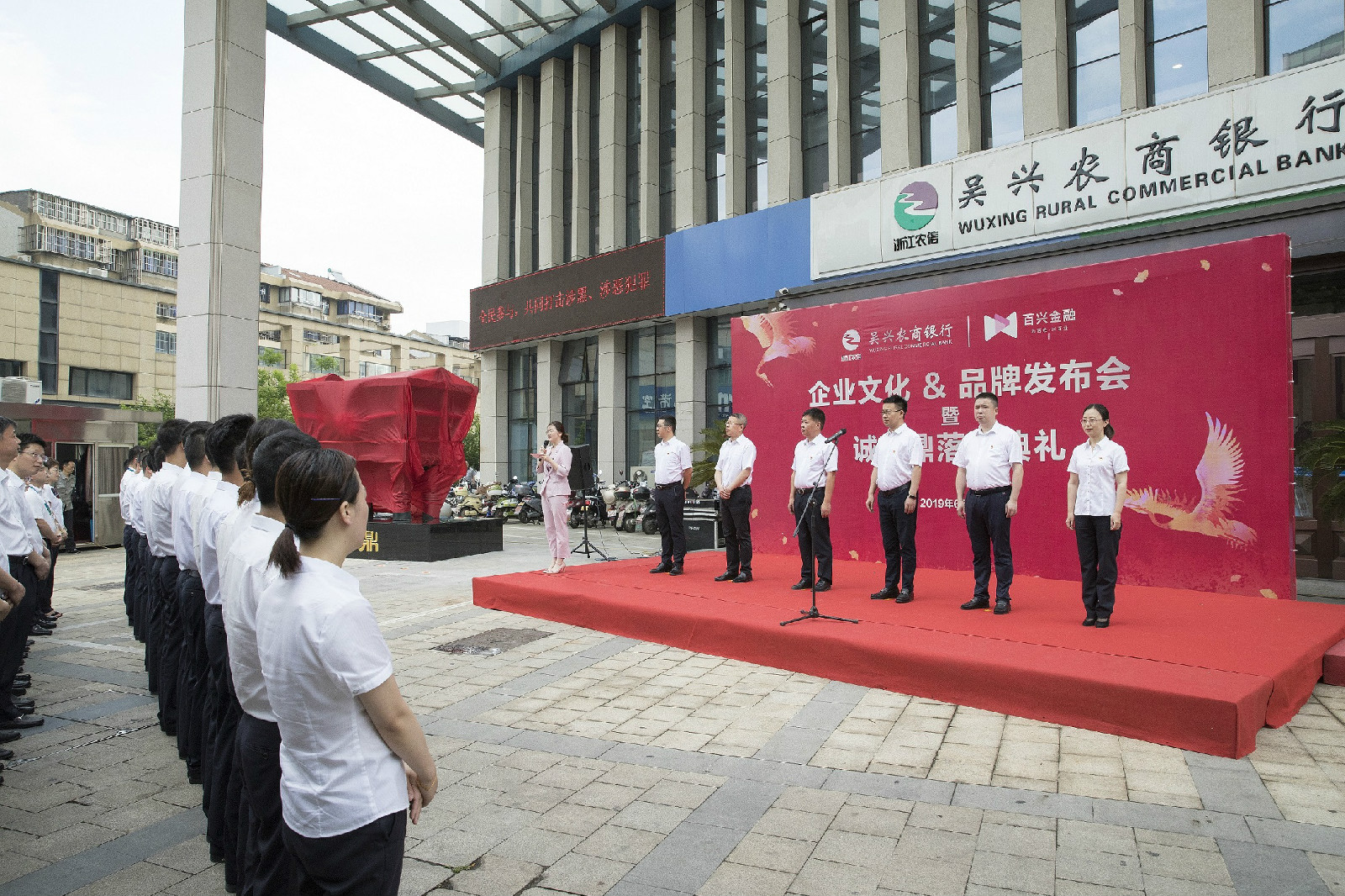 发布时间:2019-06-246月6日上午,吴兴农商银行在总行营业部广场上举行了企业文化和品牌发布会暨诚信鼎落成典礼,行领导班子、全体中层干部参加。